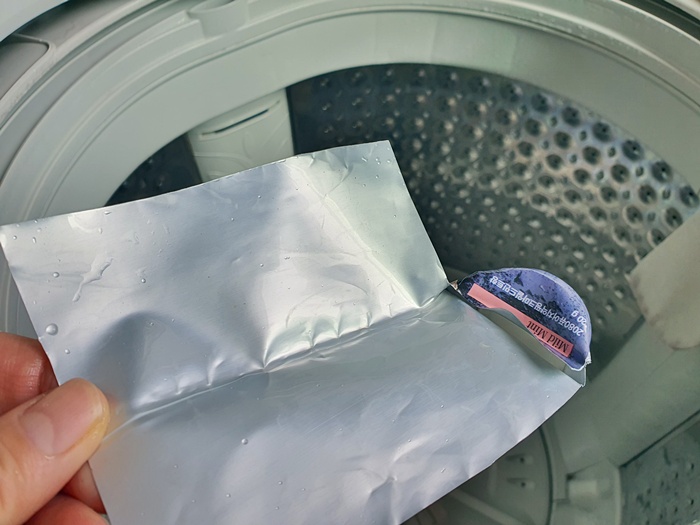 마지막으로 걸레와 자투리 치약 남은 것을 같이 넣어 줍니다. 자투리 치약을 넣는 이유는 세탁조 내부 청소하는데 한 몫 차지 하더라고요. 그냥 버리면 아까우니 이것도 계면활성제이니 세탁조 청소 할때 유용합니다.