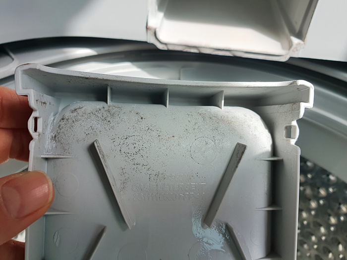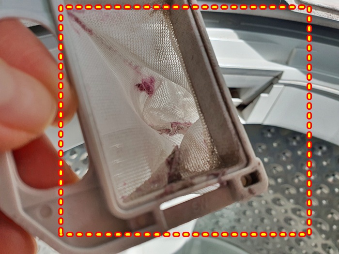 역시나 먼지 거름망을 제거하니 물때가 가득하더라고요. 당장 세탁기 청소가 시급한 상황이었습니다.