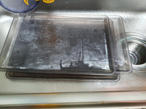 이렇게 꼬질꼬질 물때가 벗겨진 상태.....이러니 매일은 아니어도 일주일에 한 번은 물때 대청소를 해야겠지요.