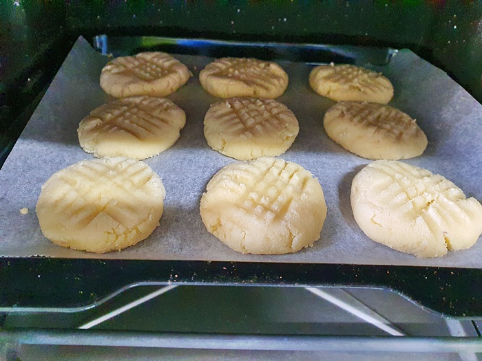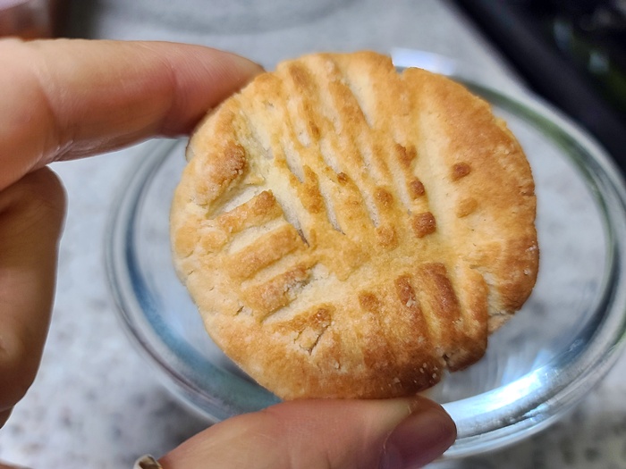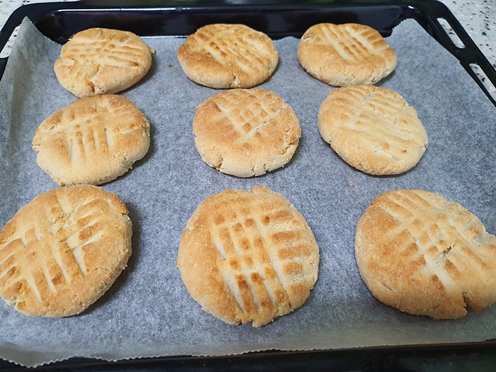 가정마다 오븐의 용량이 다 다를 수 있으니 봐가면서 노릇하게 구워지면 불을 끄면 되세요. 너무 구워지지 않으면 눅눅해서 먹기가 좀 그래요. 쿠키는 바삭해야 더 고소하고 맛있는 것 같습니다.