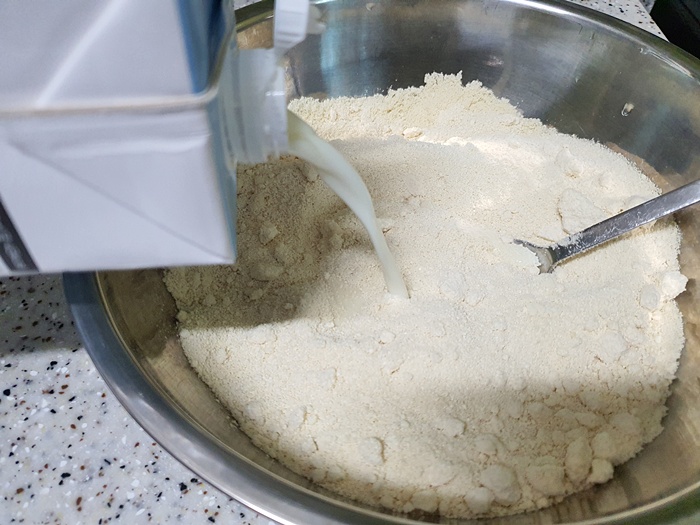 아몬드 쿠키 만드는 법은 생각보다 정말 간단해요. 안에 들어가는 재료도 최소화 해서 건강에도 좋고 간식으로도 손색이 없답니다. 그럼 반죽을 하려면 뭐가 들어갈까? 바로 우유입니다.