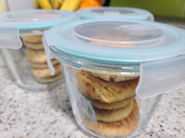 한 번 구울 때 넉넉하게 구워 준 후 식힌 후에 유리병에 담아 두고 먹으면 바삭하니 맛있어요. 식품제습제를 넣어 두면 바삭함이 더 오래가니 밀봉할 때 꼭 넣으시길요. 냉동실에 있는 식품들을 하나 둘 정리하니 어디에 뭐가 있는지 눈에 잘 보이네요. 새로 식품들을 구입하기 전에 이렇게 냉장고 파먹기 몇 번 하면 경제적으로 알뜰하기까지 하겠죠~