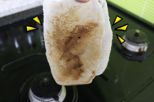 나물 삶았던 물을 가스레인지에 조금 부어 주세요. 그 다음 마른 행주를 이용해 닦아 줍니다. 한 번만 닦았을 뿐인데 순식간에 찌든 때가 지워집니다. " 이게 무슨 일이야! " 할 정도로 감탄하게 되지요.