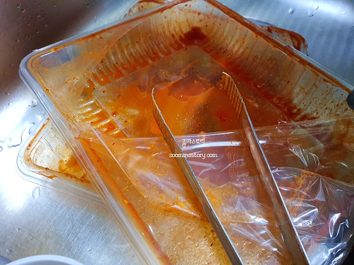 양념을 바로 한 냉장식품은 한꺼번에 다 먹기 힘들기에 전 소분해서 냉동실에 두고 먹고 싶을때 조리해 먹어요.