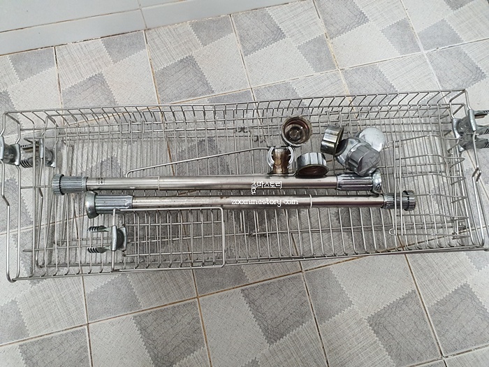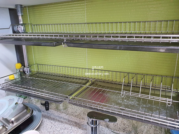 깨끗이 씻어 놓은 선반은 물기를 제거한 뒤에 다시 주방에 조립하면 됩니다. 처음엔 이걸 어떻게 분리하지? 라는 생각을 했지만 몇 번 하니 금새 분리하고 조립하는건 일도 아니더라고요.