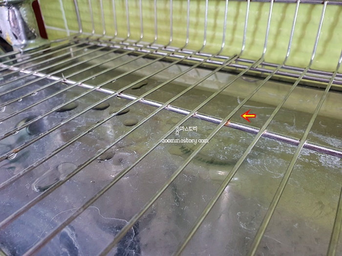 그릇을 올려 놓다보니 물기 때문에 녹이 슨 곳도 꽤 많았습니다. 뭐든 자세히 보아야 보이는 것 같아요. 거기다 그릇 물빠짐 받침도 꼬질꼬질 ... 수돗물을 사용하다보니 이런 경우는 흔한 일이라 자주 세척해 주어도 완전히 없어지지는 않더라고요.