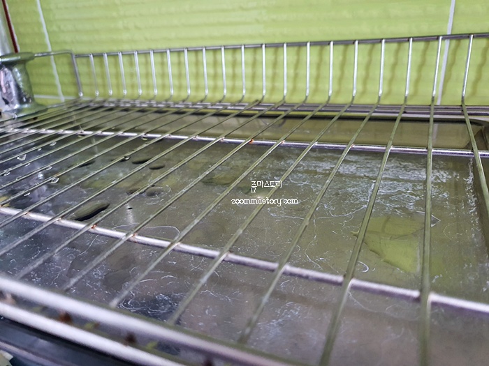 그릇을 올려 놓다보니 물기 때문에 녹이 슨 곳도 꽤 많았습니다. 뭐든 자세히 보아야 보이는 것 같아요. 거기다 그릇 물빠짐 받침도 꼬질꼬질 ... 수돗물을 사용하다보니 이런 경우는 흔한 일이라 자주 세척해 주어도 완전히 없어지지는 않더라고요.