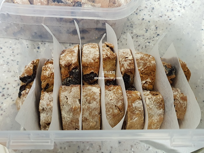 전 견과류로 호두와 아몬드 그리고 건포도를 넣어 만들었답니다. 그랬더니 씹는 식감도 좋고 너무 맛있더라고요.