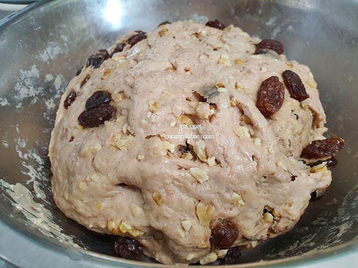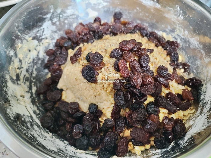 전 견과류로 호두와 아몬드 그리고 건포도를 넣어 만들었답니다. 그랬더니 씹는 식감도 좋고 너무 맛있더라고요.