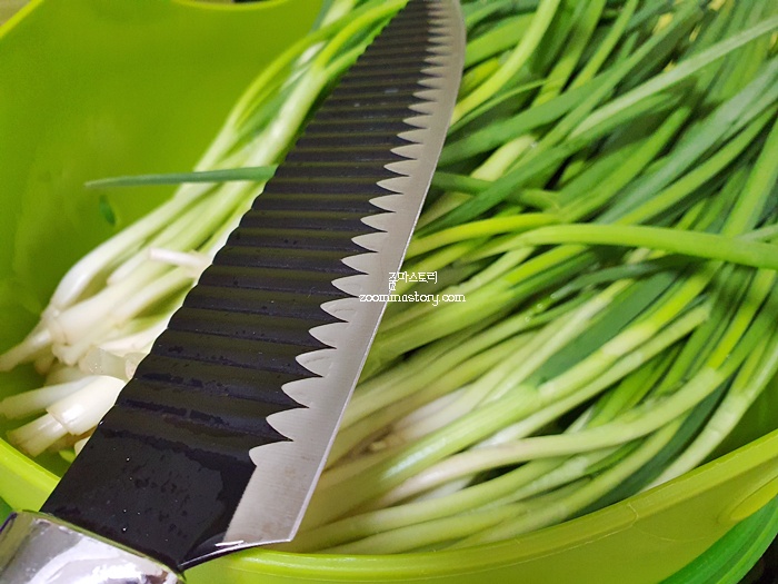 칼이 잘 들지 않아서 채소가 잘리는지 썰리는지 손에 힘만 듬뿍 들어 갔지만 뚝배기에 한 번 갈아주면 그런 기분은 들지 않고 새 칼을 사용하는 듯 너무도 채소가 잘 썰려요.