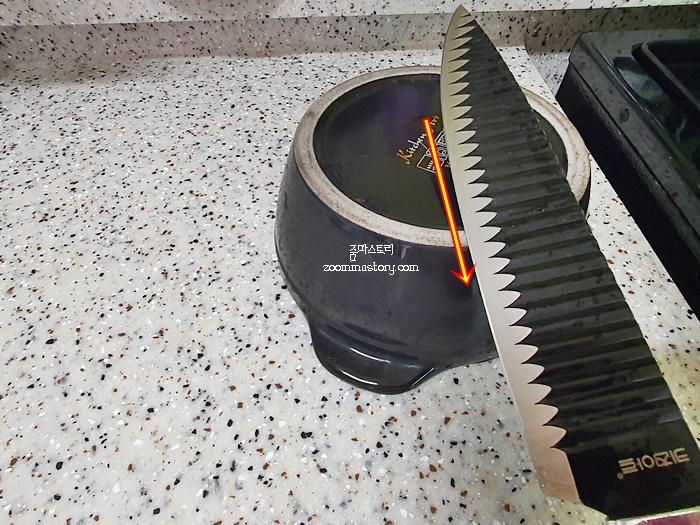 주방에서 매일 사용하는 칼이 무뎌 졌다면 지체없이 뚝배기 뒷 면으로 몇 번만 쓰윽 밀어 주면 언제 그랬냐는 듯이 칼이 잘 드니까 한 번 해 보시는거 추천해요. 사실 가정마다 숯돌이 있는 집은 별로 없잖아요. ^^