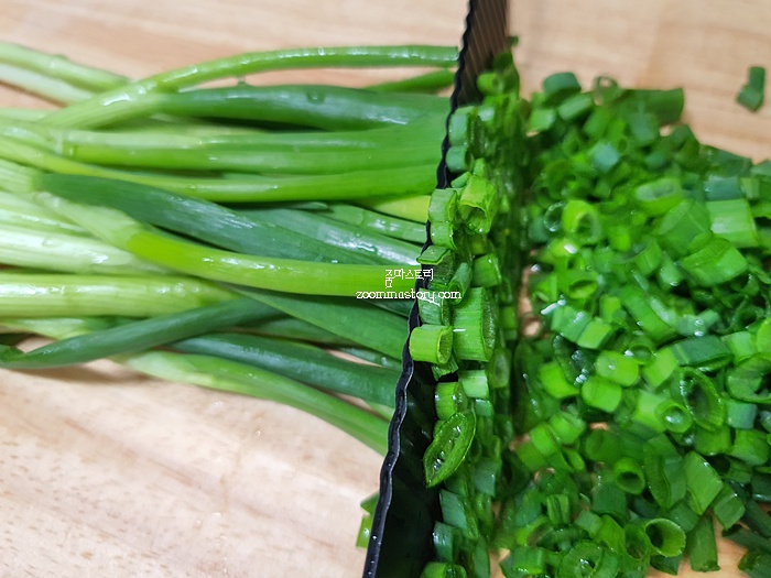 칼을 다 갈았으면 물로 한 번 씻은 뒤 채소를 썰어 주면 되세요.
