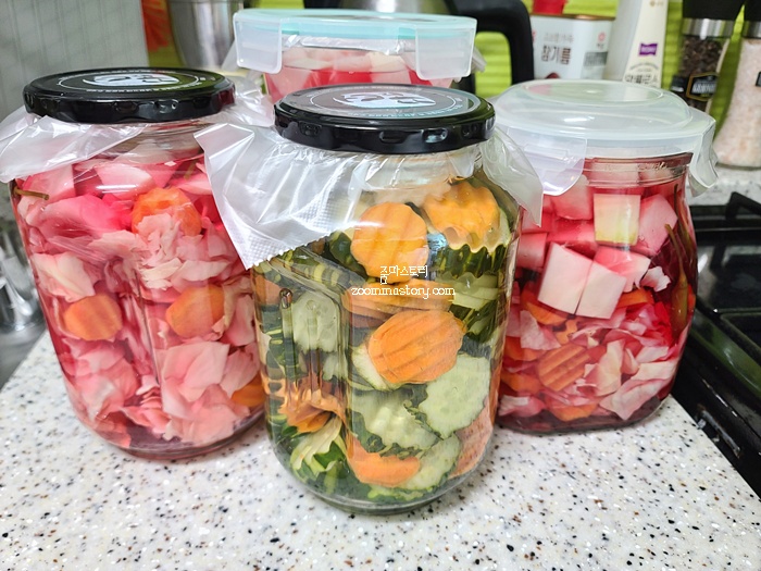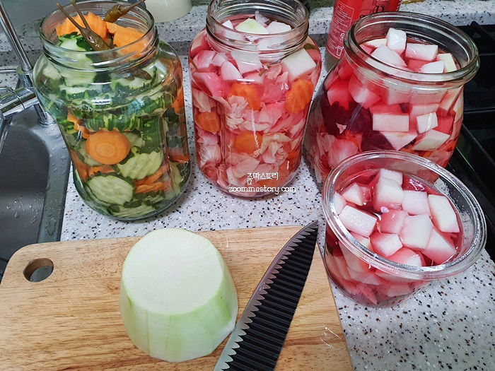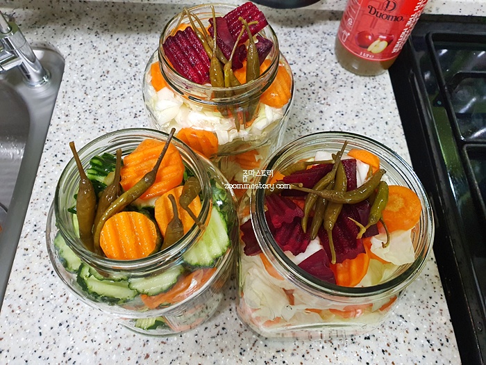 피클 담기는 의외로 간단합니다. 자세한 피클 담는 레시피는 따로 링크 걸어 둘테니 자세한 내용은 참고하시길 바라요.