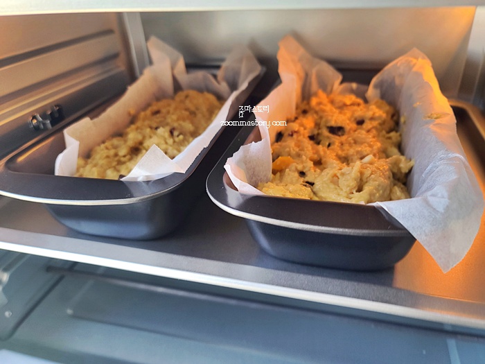 나름대로 건강식인데 바나나가 꽤 많이 들어가기에 이 또한 과식은 금물입니다. 사실 한 번 먹다보면 한 두개 쯤은 먹게 되어 조절이 힘들긴 하더라고요. 빵에 들어가는 재료는 간단하면서도 누구나 쉽게 따라할 수 있어 좋아요.