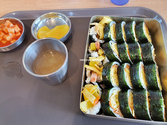 예전에 갔을때 보다 종업원들이 많이 줄었고 김밥을 싸는 모습을 볼 수 있었는데 지금은 가려져 있다. 그래서 더 궁금해지는 김밥이다.