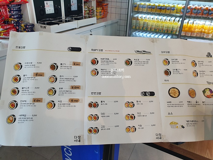 기본 김밥 즉, 달걀이 듬뿍 들어간 김밥은 4,000원이다. 보통 재료에 따라 가격이 달라지니 그건 메뉴판을 참고하면 될 듯 하다. 가격이 오른만큼 양의 차이가 있을지 주문 후 기다리면서 상상하게 되었다.