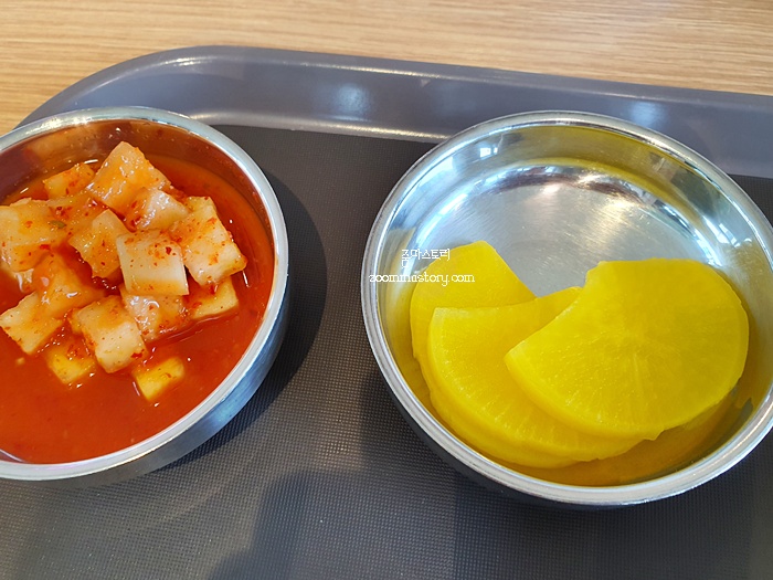 주문한 김밥이 나왔다. 반찬은 깍두기와 단무지가 나왔고 시원한 물김치가 아닌 뜨거운 장국이 나왔다. 그리고 깍두기도 야무지게 작게 썰어 놓았던 것이 예전과 달랐다. 무엇보다도 김밥 크기가 작았다. 아마도 도시락에 넣어 주면서 맞춘다고 김밥 크기를 줄였나보다. 보통 가격이 오르면 양은 그대로 주던가 더 푸짐하게 주는 곳들이 많은데 .... 하여간 그 점이 아쉽긴 했다.