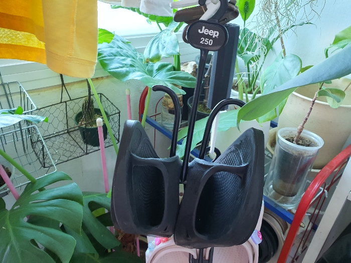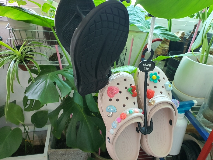 슬리퍼등 신발을 구매하다 보면 신발걸이가 있는데요. 지금껏 신발을 구매 후 그냥 버렸다면 아쉬울 수 있어요. 전 신발걸이로 슬리퍼나 크록스신발을 씻어 말릴 때 사용합니다.
