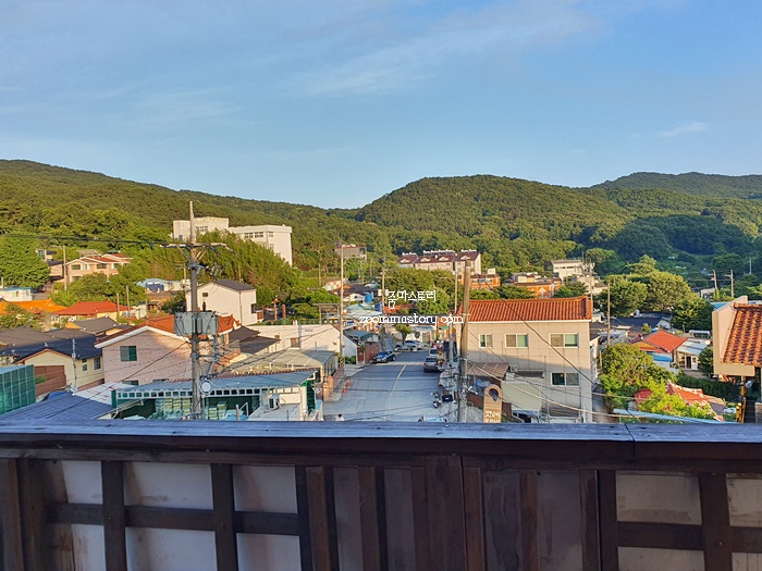 안으로 들어가면 1층이 아닌 2층으로 가야 손님이 식사를 할 수 있는 공간이 나온다. 2층에서 내려 다 본 금성산성 주변의 마을과 풍경은 부산 도심과 또 다른 멋을 자아낸다. 그래서인지 공기는 맑고 신선했다.