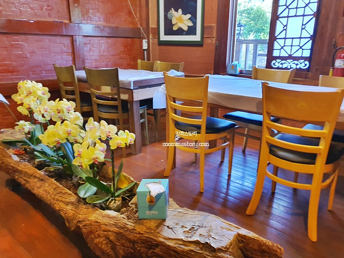 음식점 안으로 들어서면 한정식 분위기가 느껴진다. 테이블이 있는 곳도 있고 방이 있는 곳도 있다. 우린 방으로 들어갔다. 참고로 다리가 아프신 분들은 계단이 많아서 가기는 조금 힘들 것 같다. 어르신을 모시고 식사를 하러 가신다며 참고하길..