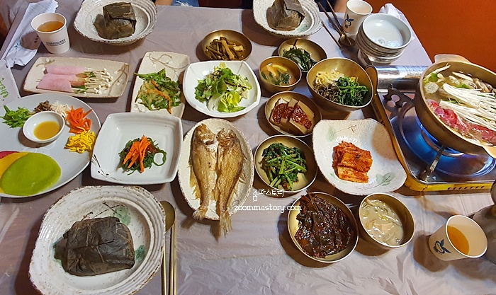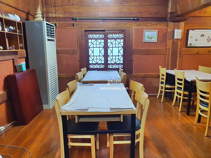 음식점 안으로 들어서면 한정식 분위기가 느껴진다. 테이블이 있는 곳도 있고 방이 있는 곳도 있다. 우린 방으로 들어갔다. 참고로 다리가 아프신 분들은 계단이 많아서 가기는 조금 힘들 것 같다. 어르신을 모시고 식사를 하러 가신다며 참고하길..