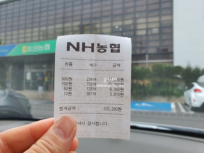 그렇게 한참을 동전을 고르고 또 골라서 오래되고 값어치가 있는 동전은 따로 빼 두고 나머지 동전을 은행에 가서 얼마가 되는지 확인도 하고 입금하기로 했는데...남편이 오만원 짜리 현금을 들고 와서 보여줬다.