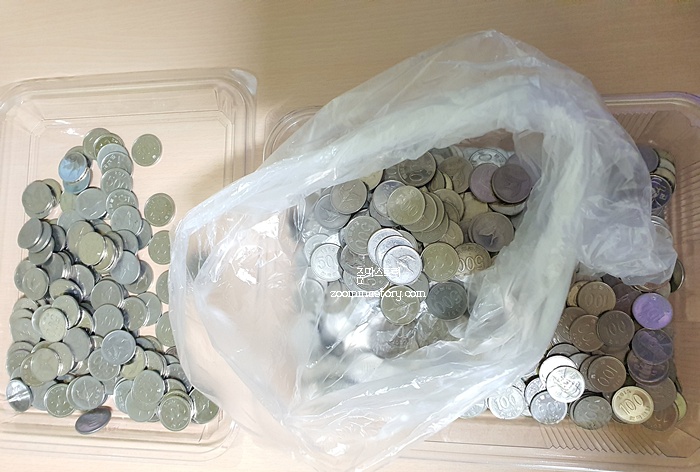 요즘엔 어딜가나 동전을 잘 가지고 다니지 않는다. 간혹 들고 다닐 경우는 마트에 갈때 카트기를 사용하기 위해 동전 몇 개 들고 갈 뿐이다. 그러고 보니 현금도 그렇지만 동전은 더 사용하지 않는 시대가 도래한 것 같다. 몇 년 동안 모아 둔 동전을 정리하기로 했다. 돼지저금통은 이미 가득 찬 상태이고 빈 플라스틱 컵에 동전을 담아 뒀었는데 청소할때마다 먼지만 쌓이는 것 같아 그냥 은행에 가서 입금하기로 한 것이다.