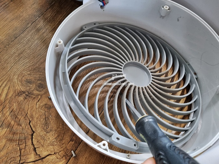 드라이버를 이용해 일일이 분리한 후에 전선과 연결이 안 된 덮개나 부속은 세제를 이용해 씻어 줍니다. 그외 선과 연결된 날개는 손소독제를 이용해 닦아 주면 되세요. 단, 많이 더러울 경우 여러 번 닦아서 완전히 먼지를 닦아 내야 합니다. 마무리는 깨끗한 걸레로 한 번 더 닦아 주면 됩니다.