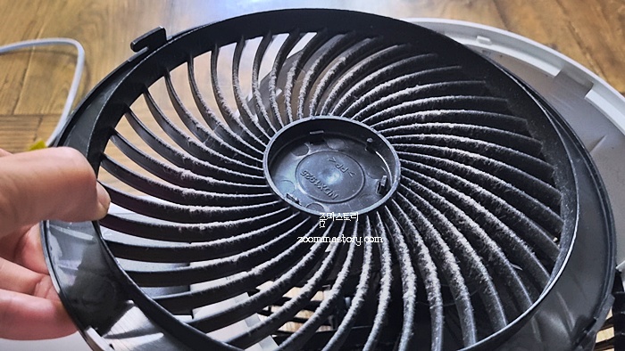 방마다 있던 서큘레이터를 다 꺼내서 청소하고 내년에 사용하기 위해 넣을 준비를 합니다. 덮개를 분리하니 안쪽 날개 부분은 정말 더럽더라고요. 나름대로 한 달에 한 번 정도는 청소했었는데 아마도 문을 자주 열어두는 원인도 있고 집에 청소할 때 먼지가 꽤나 많이 붙어서 그런 것 같았어요.