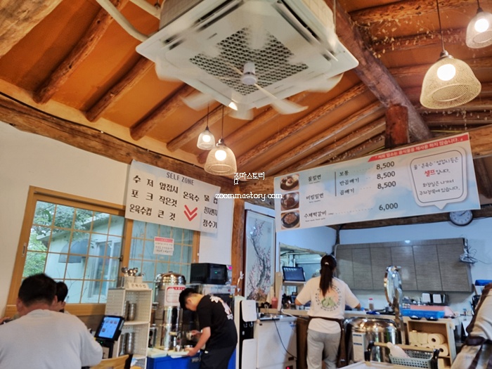 수저, 앞접시, 온육수,물은 셀프다. 요즘엔 어딜 가나 셀프코너가 있기 때문에 별 불편함은 없다.