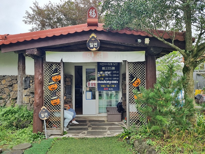 오랜만에 갔던 밀면집이다. 부산에 있을 때는 참 자주 갔던 밀면집인데 지금도 여전히 밀면을 좋아하기에 제주도 오랫동안 살아도 밀면은 자주 먹는 편이다. 부산과 다른 느낌의 밀면이긴 하지만 이곳 밀면은 내 입맛에 맞아 좋다. 명절이 지나고 밀면이 먹고 싶어 갔는데 입구부터 심상치 않은 인테리어다. 핼러윈데이가 가까워졌음을 이곳에서 새삼 느끼게 될 줄이야....