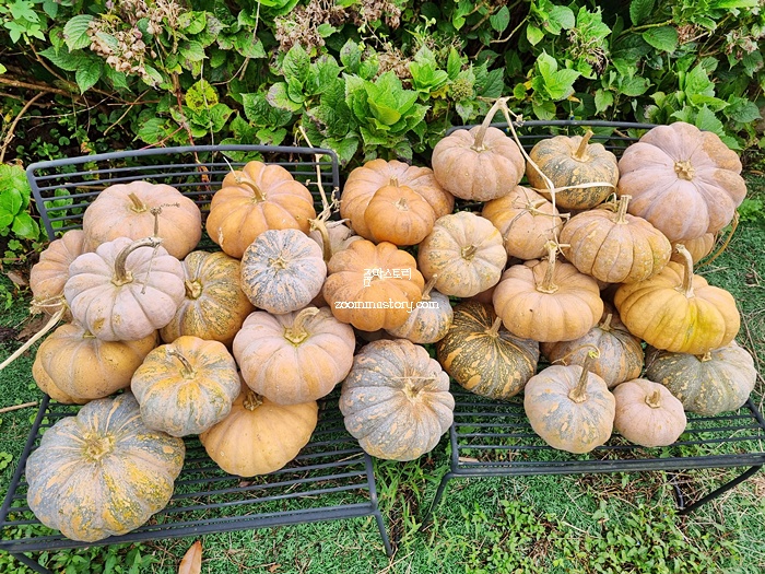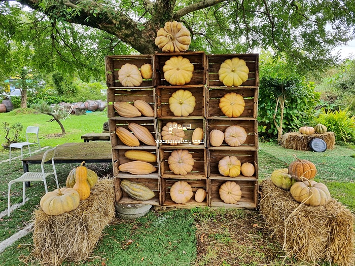 호박도 종류별로 다양하게 인테리어 되어 있다. 늙은 호박을 보니 호박죽도 생각나고 호박쿠키도 만들어 먹으면 정말 맛있겠다는 생각이 들었다. 집으로 가는 길에 농협에서 호박 한 덩어리 사가야겠다는 생각이 들 정도니까...