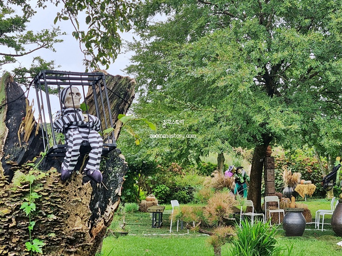 밀면을 먹으러 갔다가 소화도 시킬겸 넓은 정원에 잘 꾸며진 핼러윈 인테리어에 한참을 보게 되었다. 제주도라서 가능한 초원에서의 인테리어가 아닐까 하는 생각도 들고 자연의 아름다움을 새삼 느낀 하루였다. 명절연휴가 지나니 조금은 홀가분하기도 하고 좋긴 하다. 이제 여유로운 나만의 시간을 즐길 것 같아 좋다.