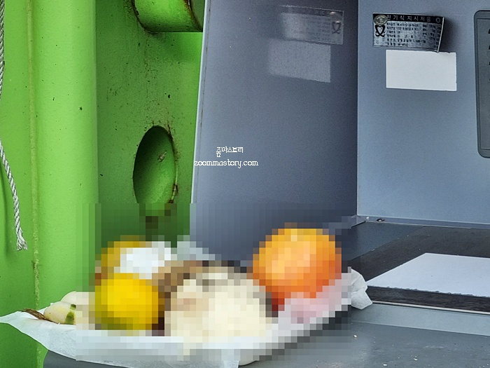잠깐동안 올려 놓았을까? 설사 그렇다 해도 많은 사람들이 이용하는 곳에 이렇게 한 접시 떡하니 올려 두는 것은 조금 아니다는 생각이 들기도 했다. 지금껏 이런 모습은 처음이었다. 보통은 집 앞이나 주변에 두는 편인데 왜 이렇게 올려 뒀을까? 고양이나 개가 혹시나 고시래를 못 먹게 하기 위함인가? 개 같은 경우는 이 정도 높은 곳에 못 올라 오니 그렇다 치지만 고양이는 어디든 올라가는데.... 하여간 이건 좀 아니라는 생각이 들었다.