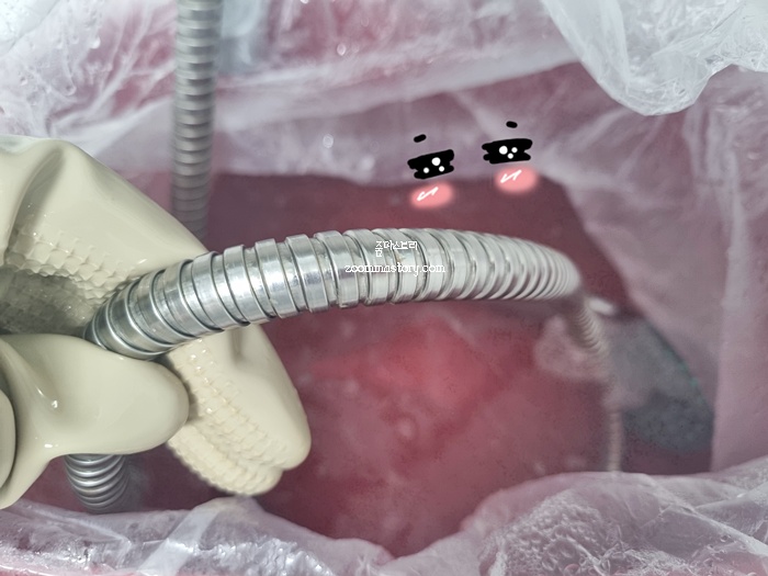 아직 솔로 닦지 않았음에도 이렇게 물때가 깔끔하게 제거된 상태다. 완벽하게 세척하기 위해서는 안 쓰는 칫솔을 이용해 한 번 더 꼼꼼히 닦아주면 더 확실하게 세척이 된다.