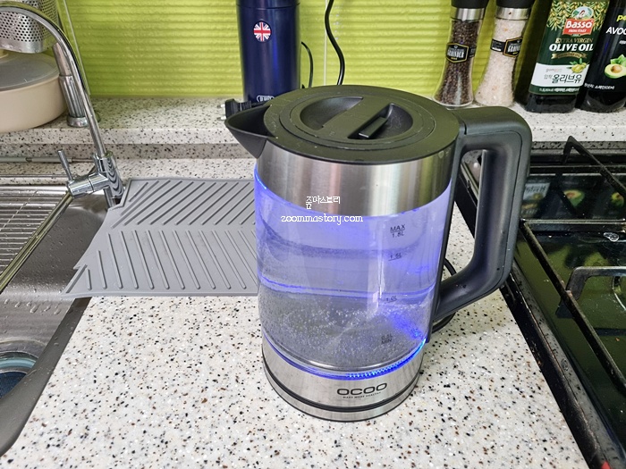 뜨거운 물은 끓여서 준비한다. 샤워기에 나오는 온수로는 세척하기엔 조금 부족한 온도라 이렇게 끓인 물을 사용해야 한다.