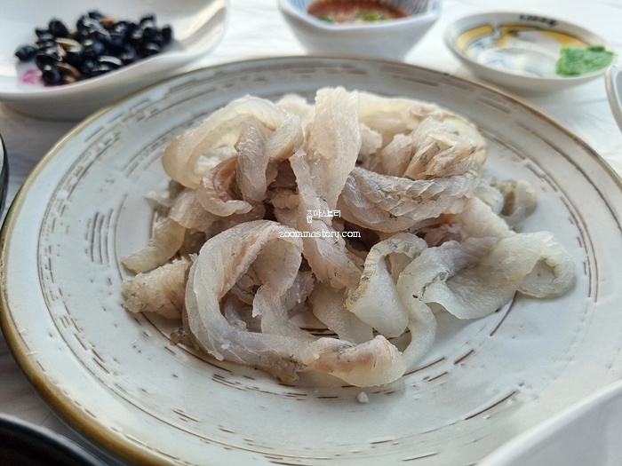 우리는 갈때마다 자주 먹는 메뉴가 따로 있다. 물회와 매운탕이나 지리탕이다. 식사 위주의 간단한 메뉴이긴 하지만 늘 그렇듯 이곳에서 식사를 하고 나면 든든함에 만족하고 나온다. 이번에는 물회와 지리탕을 주문했다. 가격은 각각 10,000원씩이다. 이곳이 다른 횟집과 다른 점은 탕을 주문하면 맛보기 회가 나온다는 점이다. 맛보기 회라고 양이 적을 거란 생각은 하지 않아도 될 정도로 둘이서 간간히 먹기에 부족함이 없다.