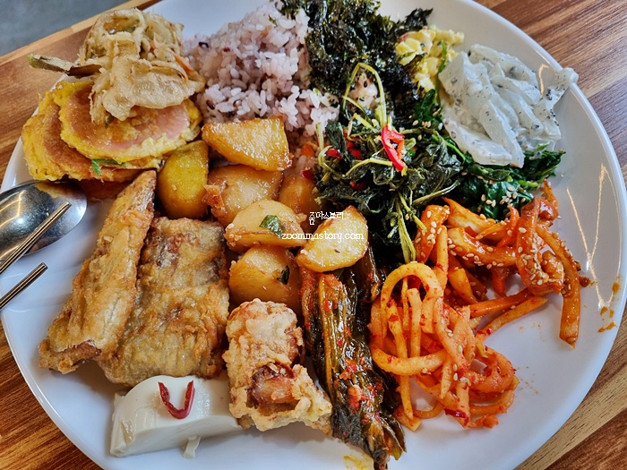 나물만 있어도 배가 부를 정도의 종류별로 구성되어 있었다. 특히 건나물이 맛있었던 기억이 난다. 각종 나물을 비빔밥처럼 해 먹어도 맛있다. 달걀프라이를 셀프로 해 먹을 수 있는 공간이 있으니 비빔밥을 해 먹고 싶다면 이용하면 되겠다.