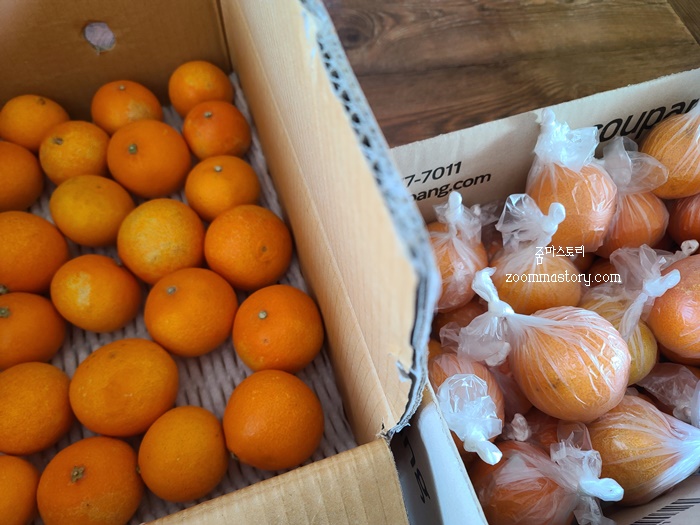 한 박스가 오면 박스째 두고 먹는게 아닌 따로 구분해 보관해야 합니다. 저도 처음에는 감귤 박스에 안 좋은 것을 골라낸 뒤 박스를 뒤집어서 보관하면 괜찮겠지! 하고 그랬다가 다 먹기도 전에 상한 것이 꽤나 많이 나왔던 기억이 있습니다.