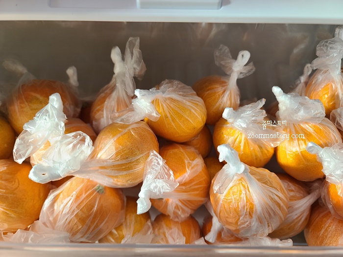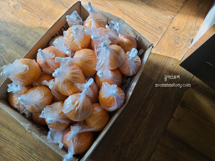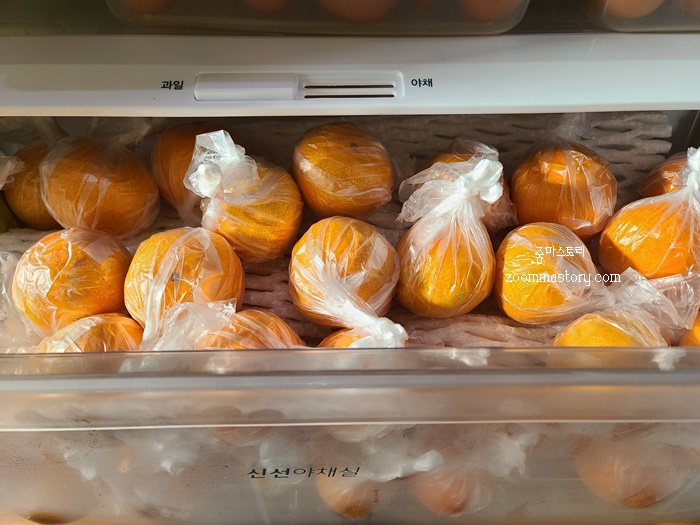 조금은 번거롭긴 했지만 비싸디 비싼 황금향인데 그게 문제겠어요. 이번에 산 황금향 한 박스도 전 일일이 하나씩 다 포장해 냉장실에 넣었답니다.