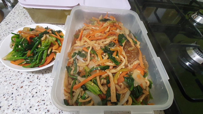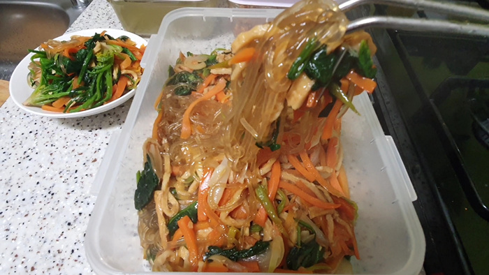 다 만든 잡채는 락앤락에 넣어두고 먹을 만큼만 덜어 데워 먹으면 됩니다.
