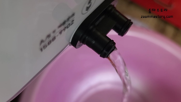 선을 분리하니 물이 시원하게 잘 나옵니다. 잘 사용하지 않을 때 물을 비워 둬야 하는 이유는 습한 여름철엔 곰팡이가 생길 수도 있답니다. 통에 물을 계속 고인 채로 두면 습한 건 사실이잖아요.