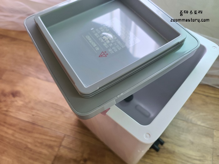 통에 물도 다 비우고 난 뒤엔 통과 뚜껑을 마른 수건으로 잘 닦아 주세요.
