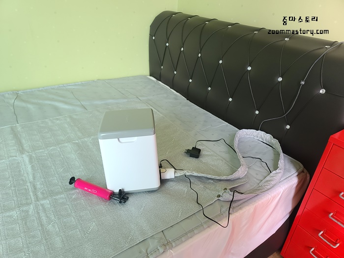 물이 별로 없을거란 생각으로 몇 번만 펌프질 하면 되겠지 하고 했더니 이게 무슨 일.... 생각보다 물이 제법 많이 나오더라고요. 쿨매트를 내년까지는 안 쓸 예정이니 물 한 방울도 다 깔끔하게 펌프로 제거해 줬어요.