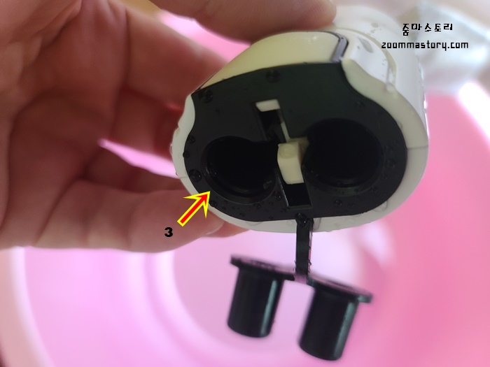 쿨매트에 물을 다 뺐다면 통에 있던 구멍과 쿨매트에 있던 구멍을 다 막아 줍니다. 이물질이 들어가는 것을 방지하기 위해서예요.