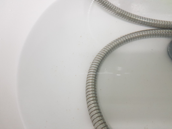 칫솔을 이용해 닦은 뒤 깨끗이 헹궈 주면 꼬질꼬질했던 샤워기헤드 및 샤워기 줄은 새 것처럼 깔끔해집니다.